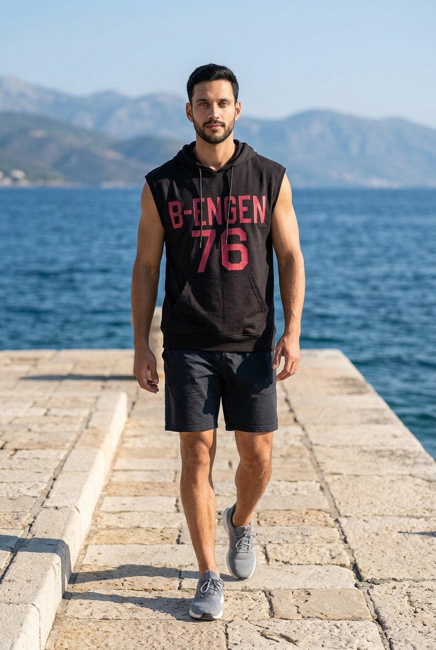 Minimalistisk, rå og klar for alt. Denne sleeveless hoodien fra B-Engen Streetwear kombinerer streetstyle med funksjon perfekt for varme dager, trening eller når du bare vil skille deg ut.