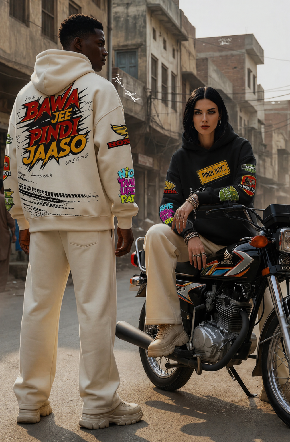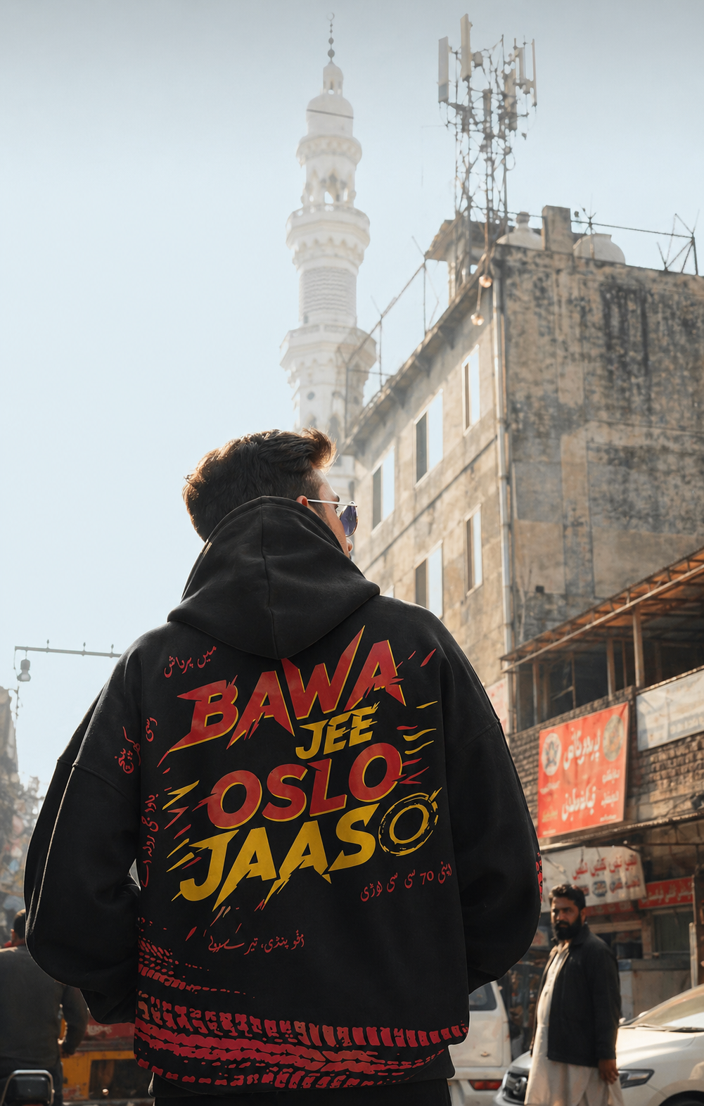 BAWA JEE PINDI JAASO er laget i samarbeid med en designer fra Pindi, og hele hoodien er inspirert av byen, gatene, kulturen og energien der nede. Hver patch og detalj på hoodien forteller noe om reisen, miljøet og uttrykket fra Pindi.