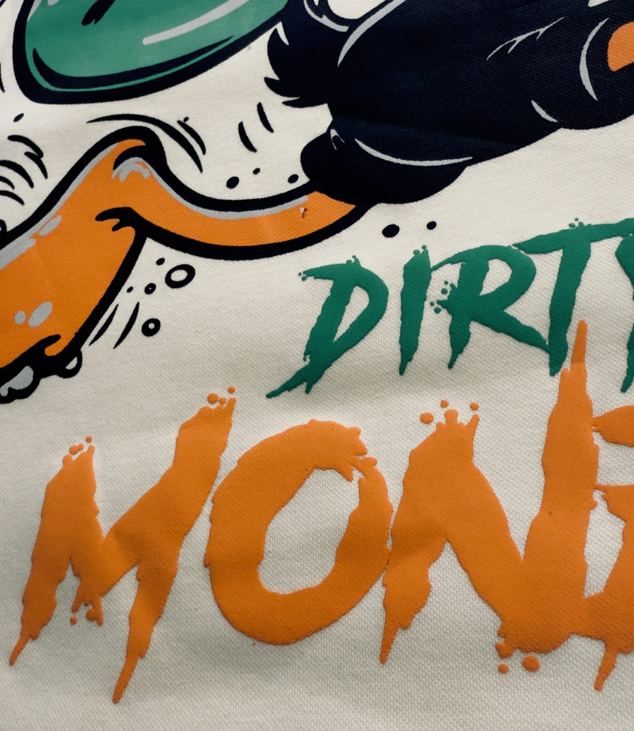 Denne hoodien er en hyllest til den klassiske cartoon-tiden – med selveste Daffy Duck på ryggen, i full retro-stil. Daffy har alltid vært den rampete, uforutsigbare karakteren som går sin egen vei – akkurat som vi i Trouble Dept.